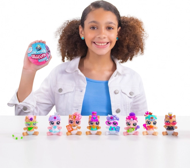 - Zberateľská edícia kúzelných mimínok v tvare jednorožcov, každé s unikátnymi detailmi a hravou osobnosťou.