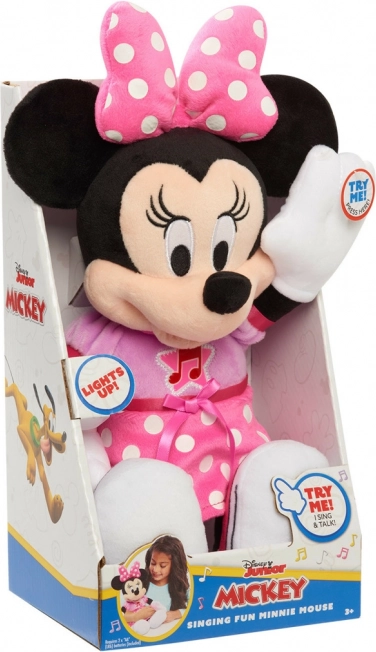 Stlačte ruku Minnie Mouse a zaspievajte si s ňou pieseň z Minnie's Bow-Toons, čo dáva deťom možnosť sa zabaviť a učiť sa zároveň.