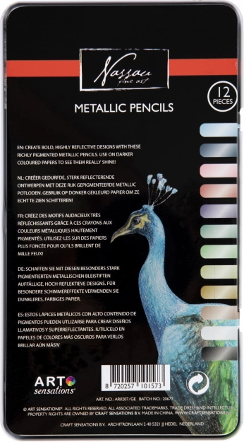 Objavte kreativitu s metalickými pastelkami Nassau – sada 12 farieb s výrazným leskom, ktoré na tmavom papieri vyniknú najviac. Vďaka bohatej pigmentácii, metalickému efektu a kvalitnému drevu sú ideálne pre deti od 6 rokov aj kreatívnych dospelých. Praktická plechová krabička chráni pastelky a uľahčuje prenášanie.