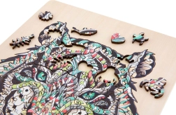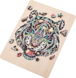 Táto štýlová sada drevených puzzle prináša spojenie kreatívnej zábavy a estetického výsledku. Obrysový tvar a špeciálne výrezy zvyšujú atraktivitu skladania, ktoré poteší deti aj dospelých. Vďaka kvalitnému spracovaniu dieliky presne lícujú a motív tigra vynikne v živých detailoch.