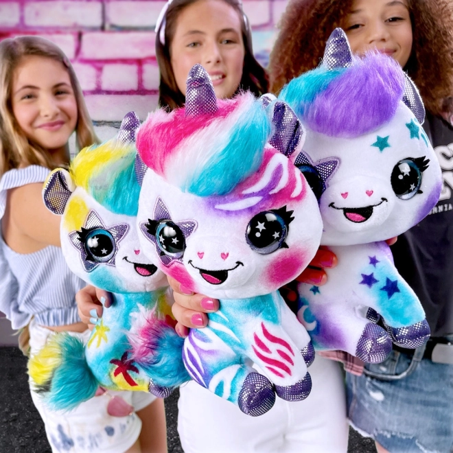 Jednoduché striekanie farieb na plyšového jednorožca s pomocou šablón aj voľnou rukou. Perfektné pre začiatočníkov aj malých umelcov.