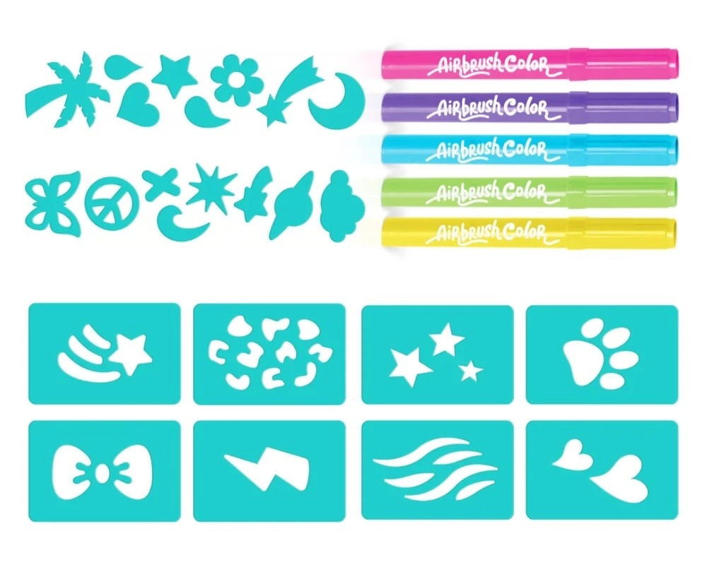 Rozšírte kreatívne možnosti svojho airbrush setu vďaka náhradným náplniam s pestrou paletou farieb a praktickými šablónami. Jednoduché použitie podporí fantáziu a jemnú motoriku detí, zatiaľ čo bezpečné zloženie a ľahká aplikácia zaistia bezstarostné tvorenie.