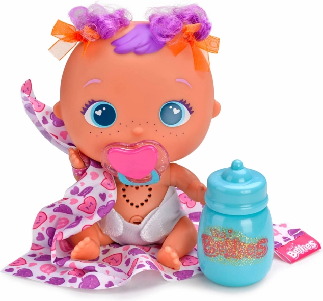 Roztomilá interaktívna bábika Bellies s unikátnym materským znamienkom. Každé bábätko šveholí a simuluje tlkot srdiečka, čo vytvára realistický zážitok pre malých opatrovateľov.