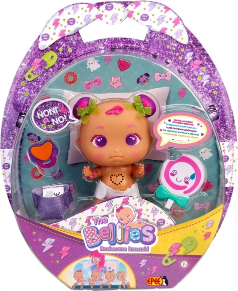 Roztomilé interaktívne bábätko z kolekcie Bellies Sweet Tummies poteší každé dieťa. Bábika žvatlá, má bijúce srdiečko a unikátne materské znamienko. V balení nechýbajú doplnky na hranie vrátane cumlíka, plienok a fľaštičky alebo lízanky.
