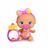 V balení nájdete bielu aj trblietavú plienku, cumlík a fľašu alebo lízanku – všetko pre pestrú imaginatívnu hru.