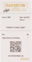 V kolekcii nájdete 27 rôznych torebiek od štýlov každodenných až po večerné. Môžete ísť s tote taškami, ruksakmi, ľadvinkami alebo večernými listovými kabelkami. Každá kabelka je zabalená v ikonickom kufríku Rainbow High, ktoré obsahuje prázdny vrecúško, papierový obrúsok, samolepku a dokonca aj vytlačený doklad s odpovedajúcim puzdrom na doklady.