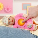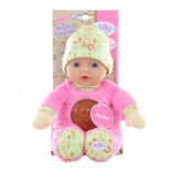 Táto mäkkučká bábika s veľkosťou 30 cm je ideálny spoločník do kolísky aj postieľky. Vďaka integrovanému nočnému svetlu a jemnej uspávanke upokojí bábätko a pomôže mu ľahšie zaspať. Mäkké textilné telíčko, plyšové dupačky a vinylová hlavička s čiapočkou s hviezdičkami lákajú na maznanie a jemnú hru.