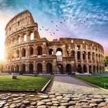 Pôsobivá fotografia rímskeho Kolosea v teplých farbách západu slnka dodá hotovému obrazu jedinečnú atmosféru a dekoratívnu hodnotu.