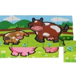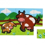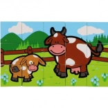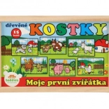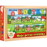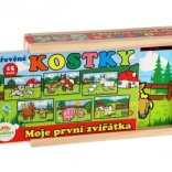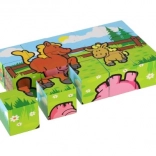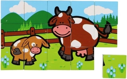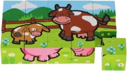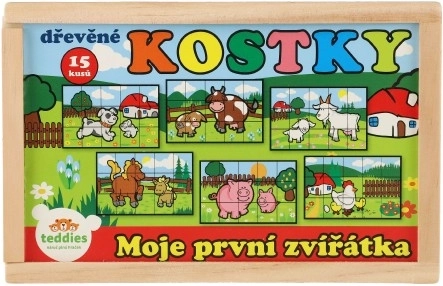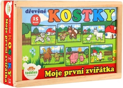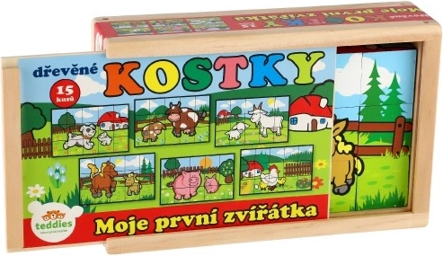 Drevené kocky s farebnými obrázkami rôznych domácich zvierat sú skvelým nástrojom pre rozvoj detí. Pri správnom poskladaní sa objaví jeden zo šiestich obrázkov, čo podporuje logické myslenie a fantáziu u najmenších. Počas stavania a búraniu komínov deti pochopia princíp rovnováhy a základov príčiny a následku.
