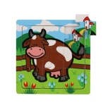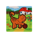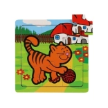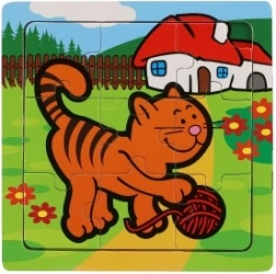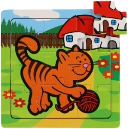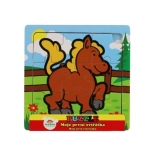 Puzzle je vyrobené z kvalitného dreva, ktoré poskytuje trvanlivosť a príjemný pocit pri manipulácii. Deväť kúskov je umiestnených na drevenej doske s vyfrézovaným okrajom, čo uľahčuje skladanie a pomáha udržať kúsky na mieste.