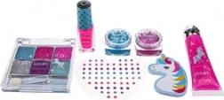 Rozžiarte detskú fantáziu s detskou sadou líčenia LUKKY v motíve jednorožca. V balení nájdete trblietavé gély, lesk na pery s príchuťou, zlupovací lak na nechty, trblietavé očné tiene s aplikátorom, nálepky–drahokamy aj pilník na nechty – ideálne na kreatívnu a hravú zábavu od 3 rokov.
