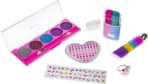 - 1× samolepky na nechty, 1× lesk na pery (jahodová príchuť), 1× prstienok „jednorožec“, 1× nálepky „drahokam“ na tvár a nechty, 1× trblietavé krémové očné tiene s aplikátorom, 1× krieda na vlasy