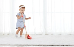 Drevené chodítko s interaktívnou tabuľou a triediacim boxom