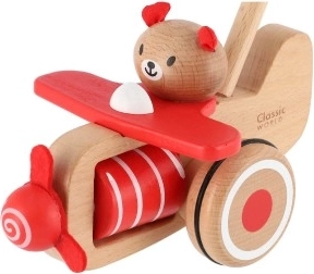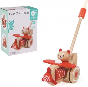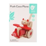 Tlačiace lietadlo drevené 55cm tlačiace s tyčou v krabici 20x28x13cm 12m+