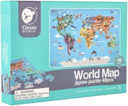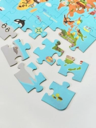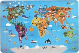 Deti môžu preskúmať každý kút sveta vďaka tomuto úžasne ilustrovanému drevenému puzzle. Lepením jednotlivých dielikov na miesto sa naučia rozpoznávať jednotlivé kontinenty a oceány.