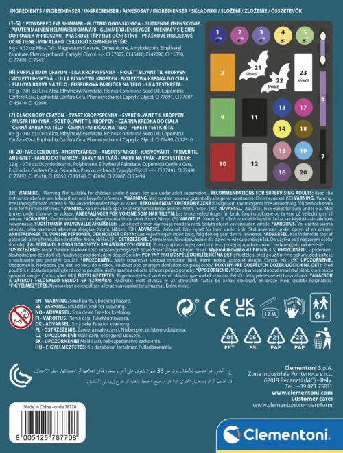 S touto sadou na maľovanie na tvár od značky Clementoni si deti užijú veľa zábavy a rozvíjajú svoju kreativitu. Otvorte krabičku a čaká na vás prehľadne usporiadaná paleta so všetkými nevyhnutnosťami na bezpečné a hravé líčenie.