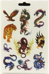 Užite si kreatívnu zábavu s dočasným tetovaním v praktickom bloku. Vďaka bohatému výberu motívov – od drakov a zvierat cez kvety až po hudobné symboly – si vyberie každý. Tetovanie sa nanáša počas pol minúty a rovnako ľahko sa odstráni, takže môžete motívy ľubovoľne striedať podľa nálady a príležitosti.