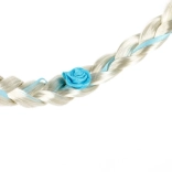 Elegantný blond vrkoč prepletený svetlomodrou stuhou a kvietkami dodá kostýmu jemnosť a rozprávkový šmrnc.