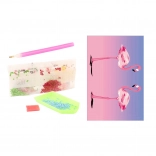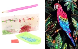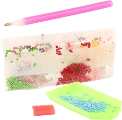 V balení nájdete všetko, čo na tvorenie potrebujete: aplikátor (pero), voskový vankúšik na ľahké naberanie kamienkov, podnos na triedenie a vrecúška s farebnými kamienkami. Sada je vhodná pre deti od 5 rokov a podporuje trpezlivosť, jemnú motoriku a sústredenie.