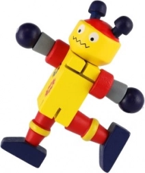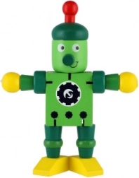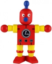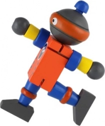 Roztomilý drevený robot s veľkosťou 12 cm poteší každého malého objaviteľa. Vďaka pružným gumičkám má pohyblivé končatiny aj hlavu, takže ho deti ľahko posadia, postavia či rôzne naaranžujú. Hračka podporuje jemnú motoriku, kreativitu a fantáziu. Vhodné od 18 mesiacov.