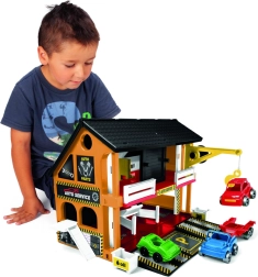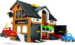 Stavebnica je vybavená troma autíčkami, rampami a 34 nálepkami pre vlastnú ozdobu dielne. Vďaka ľahko spojiťeľným prvkom je montáž jednoduchá a trvácna, čo zaisťuje bezpečnú a ničím nerušiacu zábavu. Herná zostava rozvíja nielen detskú fantáziu a vizuálno-priestorovú inteligenciu, ale aj psychomotorické funkcie a manuálnu zručnosť.