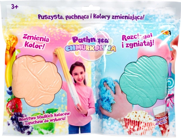 Objavte neobmedzené možnosti tvorby s Chmurkolinou, mäkkou, jemnou a nadýchanou hmotou, ktorú možno ľahko tvarovať a naťahovať. Každá sada obsahuje dve hmoty s unikátnou vôňou a schopnosťou meniť farbu.