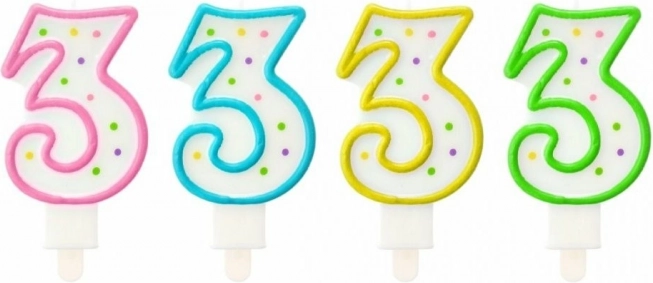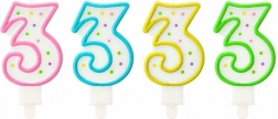 Sviečka na tortu číslo 3 s výškou 7,3 cm je dokonalým doplnkom pre oslavu narodenín číslovaných rokov.