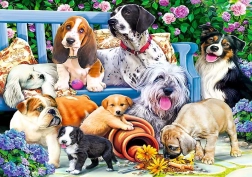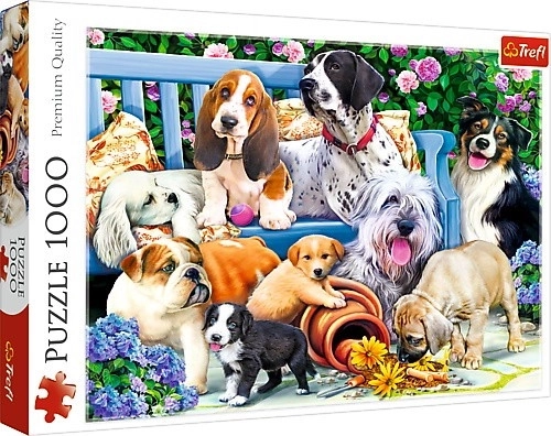 Puzzle Psia záhrada 1000 dielikov predstavujú ideálny spôsob, ako stráviť voľný čas. Táto sada obsahuje obrázok psov v záhrade o rozmeroch 683x480 mm po zložení.