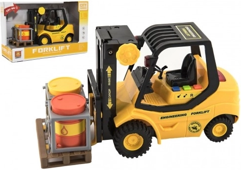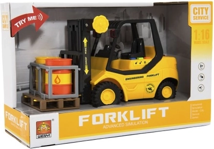 Plastový vysokozdvižný vozík 23 cm na zotrvačník s batériou. so zvukom a svetlom v krabici 29x19x12cm