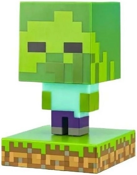 Táto svietiaca figúrka zombie z MINECRAFT prinesie do izby jedinečnú atmosféru. Blokový dizajn na podstavci pripomínajúcom trávnatý kváder vynikne na pracovnom stole, poličke aj v hernom kútiku. Úsporné LED poskytujú príjemné ambientné svetlo na večerný oddych aj hranie.