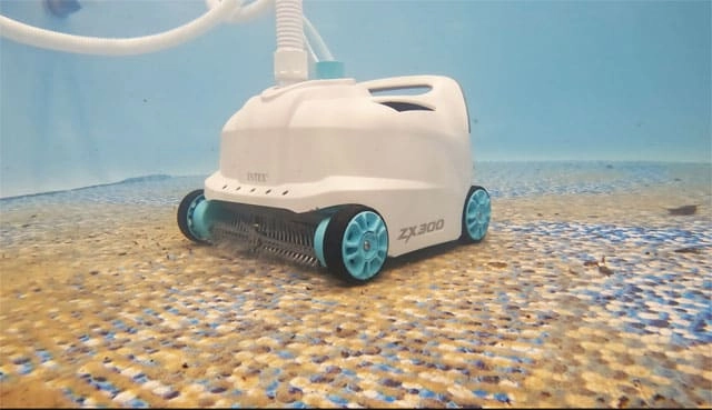 INTEX ZX300 je spoľahlivý automatický vysávač, ktorý udrží váš bazén čistý po celú sezónu. Vďaka štyrom kolesám, silnému saciemu výkonu a dvom rotačným kefám si poradí s pieskom, lístím aj usadeninami na dne a stenách. Pripojí sa priamo k filtračnému čerpadlu a pracuje úplne automaticky – vy si len užívate vodu.