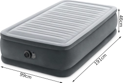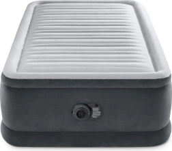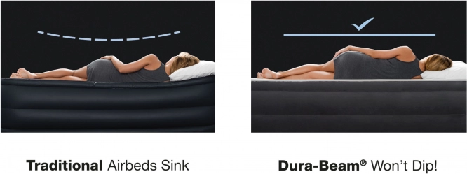 Nafukovacia posteľ Intex Deluxe je skvelou voľbou pre hostí, do prenájmu aj na dovolenku. Zvýšená konštrukcia 46 cm uľahčuje vstávanie a mäkký, flokovaný povrch zaisťuje príjemný dotyk aj spoľahlivé držanie prestieradla. Vnútorné výstuhy Fiber-Tech z odolných polyesterových vlákien udržujú matrac pevnú a tvarovo stálu, zatiaľ čo systém Dura-Beam rovnomerne rozkladá hmotnosť a podporuje správne zarovnanie chrbtice.