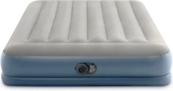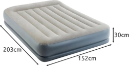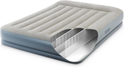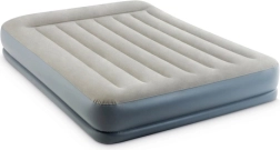 Dvojlôžkový nafukovací matrac INTEX s technológiou Dura-Beam Fiber-Tech ponúka pevnú oporu, komfortný velúrový povrch a rýchle nafúknutie aj vyfúknutie vďaka vstavanej elektrickej pumpe približne za 3 minúty. Ideálny ako pohodlné lôžko pre hostí, do domu aj kempu, s nosnosťou až 272 kg a jednoduchým skladovaním.