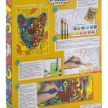 Kompletná sada obsahuje plátno s predlohou, akrylové farby a 3 štetce rôznych veľkostí. Otvorte balenie a môžete hneď začať maľovať.