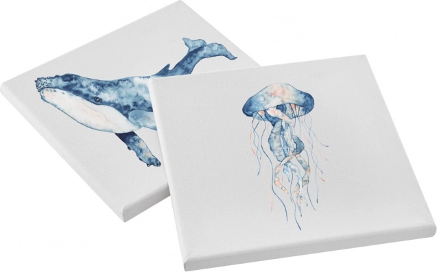 Univerzálne bavlnené plátna 20 × 20 cm sú predpnuté na rám a pripravené na použitie, takže sa môžete rovno pustiť do tvorby. Jemná štruktúra vlákna zaisťuje dobrú priľnavosť farieb a čisté ťahy štetcom.