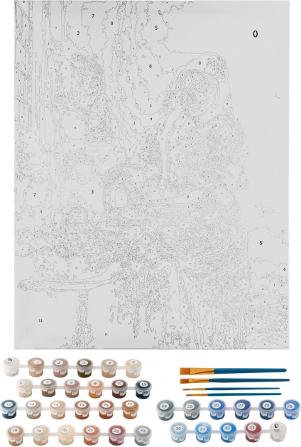 Všetko potrebné v jednom balení: predtlačené plátno, 35 farieb a 4 štetce – otvorte a začnite maľovať bez ďalších nákupov.