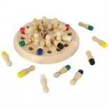 Táto drevená pamäťová hra kombinuje jednoduché pravidlá s chytrým tréningom mozgu. Hráči si najprv zapamätajú farby kolíčkov, potom ich otočia a podľa hodu kockou hľadajú správnu farbu. Body získava ten, kto si pamätá najlepšie. Hra rozvíja koordináciu ruka–oko, jemnú motoriku aj koncentráciu.