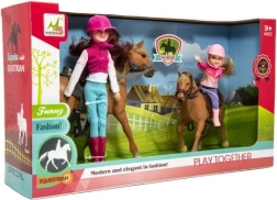 Krásna súprava pre malé milovníčky koní podporuje kreatívnu a imaginatívnu hru. Obsahuje dve bábiky a ich kone, vhodné pre deti od 3 rokov.