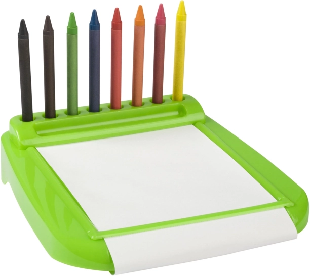 Maľovací stôl umožňuje praktické usporiadanie voskoviek a papiera, čo uľahčuje tvorbu pre deti.