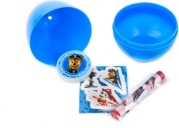Vajíčko je navrhnuté s farebnou grafikou a motívmi Labková Patrola, čo zaujme na prvý pohľad.
