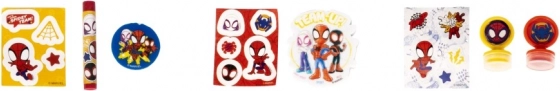 Obsahuje rôzne potreby ako samolepky, bloky či plagáty s motívom Spider-Mana, ideálne pre každodenné využitie.