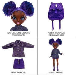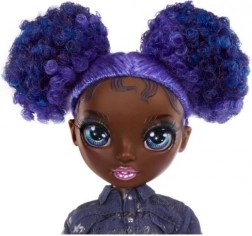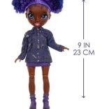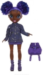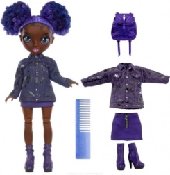 Bábika Krystal Bailey zo série RAINBOW HIGH Junior High žiari trendy outfitom v tónoch fialovej a modrej. Vďaka pohyblivým končatinám a premysleným detailom oblečenia je stvorená na módny styling, rozprávanie príbehov aj rozvoj fantázie. Kompaktná výška okolo 23 cm z nej robí ideálnu parťáčku na cesty.