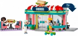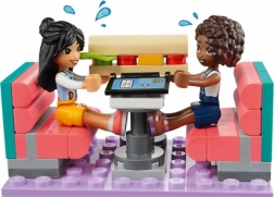 Vytvorte si vlastnú reštauráciu s farebnou súpravou LEGO Friends Bar v centre Heartlake, ktorá prináša drive‑thru okienko, vonkajšie sedenie, herný automat a pohyblivý jukebox. Deti si užijú prípravu sendvičov z chladničky, obsluhu zákazníkov aj jazdu na skateboarde – a možno príde aj prefíkaná mačka na návštevu!