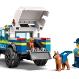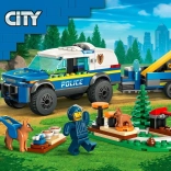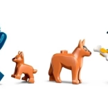 Dve minifigúrky policajtov, figúrka psa a šteniatka, plus kefa, baterka, lopata a maškrty – všetko pre živé role-play scény psovodov.