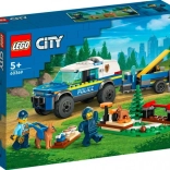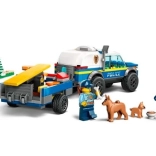 Tento akčný set prináša všetko pre realistický výcvik psov: stabilné policajné SUV K9 s prívesom, tri tréningové prekážky (hojdačka–rovnátko, plot a stupienky), prírodnú scénu a bohaté príslušenstvo. Deti ho ľahko postavia a hneď sa zahrajú na psovodov, ktorí vedú psa a šteniatko cez prekážky.