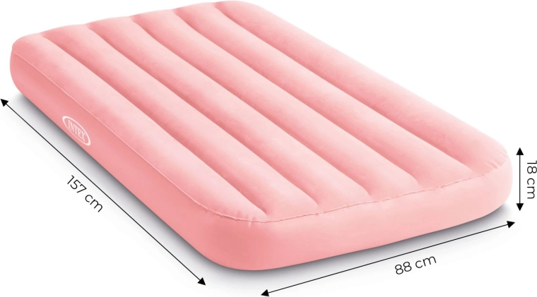 Ľahký a pohodlný nafukovací detský matrac INTEX s rozmermi 157 × 88 × 18 cm je ideálny na doma aj na cesty. Ponúka príjemný velúrový povrch, stabilnú oporu vďaka Fiber‑Tech a Dura‑Beam a nosnosť 45 kg. Praktická ružová farba poteší deti a opravná záplata v balení predĺži životnosť.