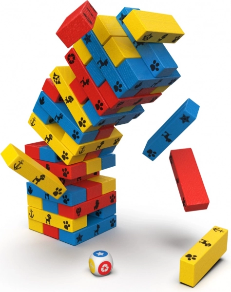Farebná balančná veža s obľúbenými hrdinami zo sveta Tlapkovej patroly prináša jednoduché pravidlá a veľkú porciu napätia. Hráči sa striedajú v odoberaní drevených kvádrov podľa farby hodenej na kocke a ukladajú ich na vrchol veže – s každým ťahom je konštrukcia menej stabilná a zábava graduje.