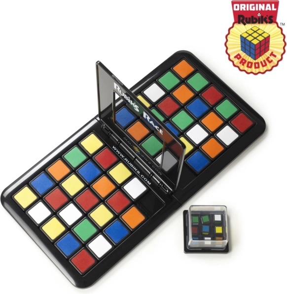 Rubikova závodná hra prináša svižnú zábavu a priateľskú rivalitu do každej rodiny či partie. Spôsob hry je jednoduchý: potraste špeciálnou kockou, ktorá vygeneruje cieľový vzor, a potom čo najrýchlejšie preskupujte dlaždice na svojej mriežke. Vyhráva ten, kto prvý správne poskladá stred 3×3 podľa zobrazeného vzoru.