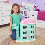 GABBY mačací domček – Purrfect Dollhouse je veľké, farebné a detailne prepracované herné centrum inšpirované obľúbeným seriálom. Deti čaká množstvo interaktívnych momentov: po stlačení predného tlačidla zaznejú pesničky, zvuky a hlášky zo seriálu, výťah Cat-A-Vator ich vyvezie na každé poschodie a tajné balíčky ukrývajú prekvapivé doplnky pre ďalšie hranie.