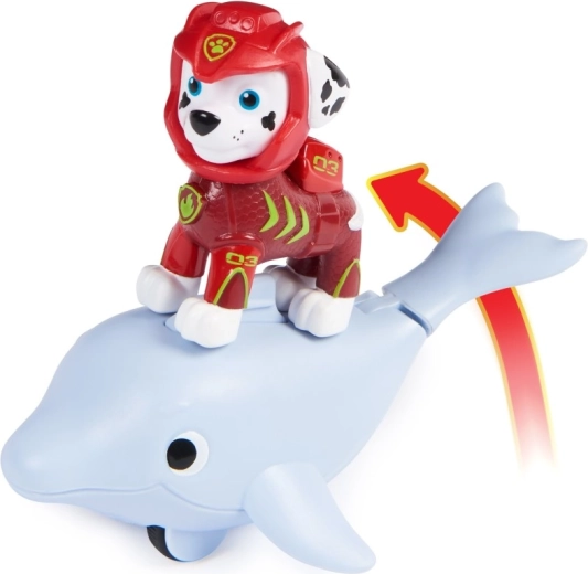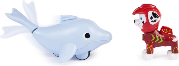 Marshall v úplne novom neoprénovom obleku a jeho verný delfíní parťák. Pripni Marshalla na plutvu na chrbte delfína, posúvaj delfína dopredu, aby si aktivoval pohyby jeho chvosta, a vyraz do záchranárskej akcie. Vhodné od 3 rokov.